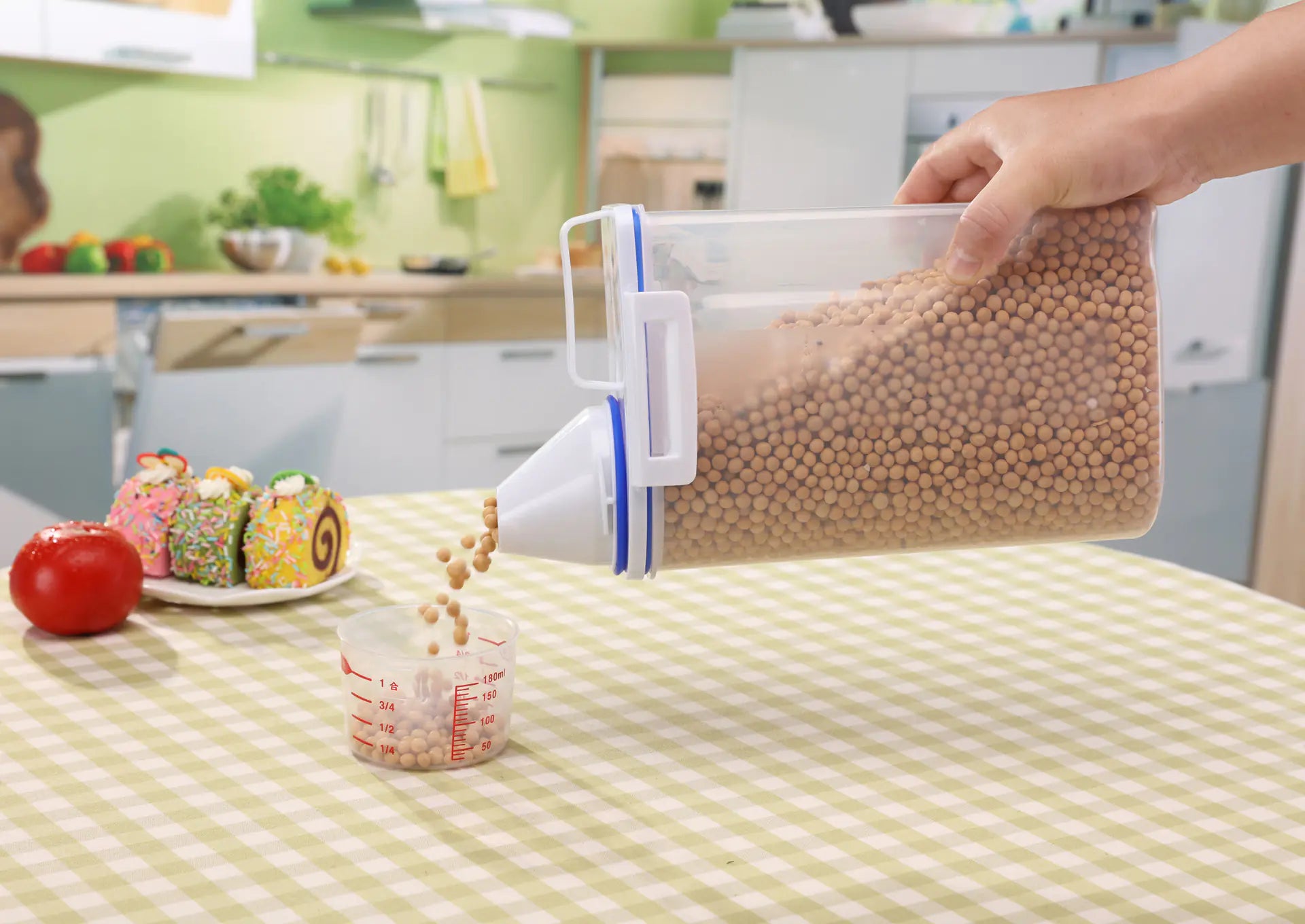 Transform your kitchen storage with our innovative 2KG Grain Storage Container equipped with a measuring cup! This stylish and functional container is perfect for keeping your pantry organized, whether you’re storing cereal, snacks, flour, sugar, or even pet food.